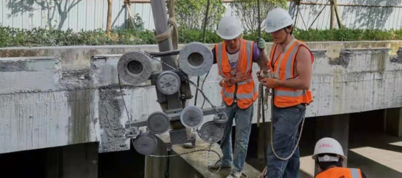 在結(jié)合多年的大工程,高難度工程施工經(jīng)驗(yàn)的基礎(chǔ)上,公司對(duì)各類建筑物、構(gòu)筑物的鋼筋混凝土切割拆除總結(jié)出了一整套獨(dú)到的施工新工藝,解決了大型混凝土建筑改造中的施工及環(huán)保難。